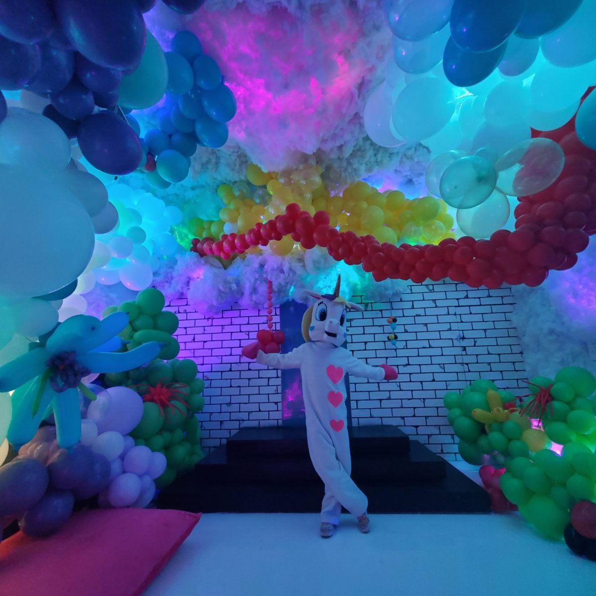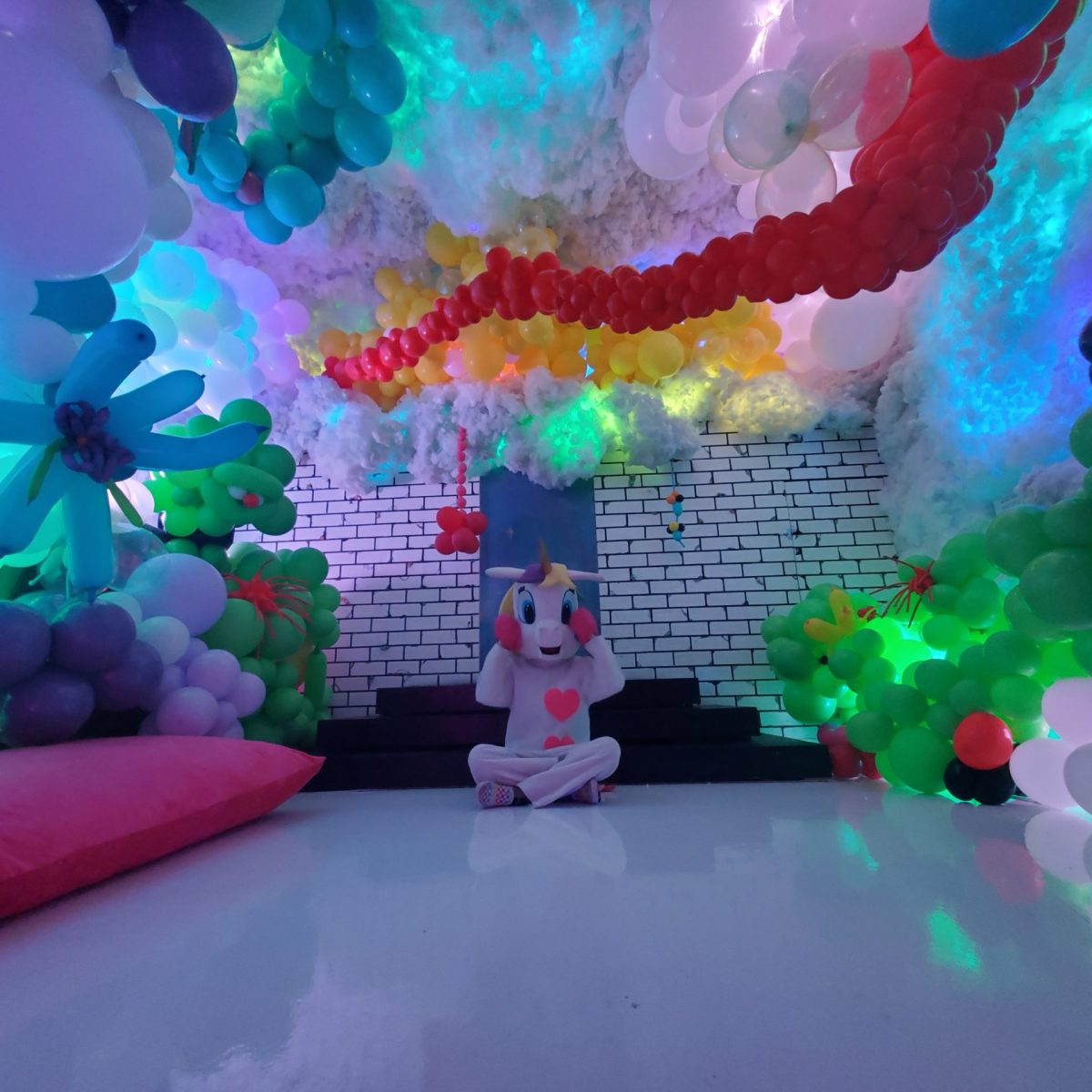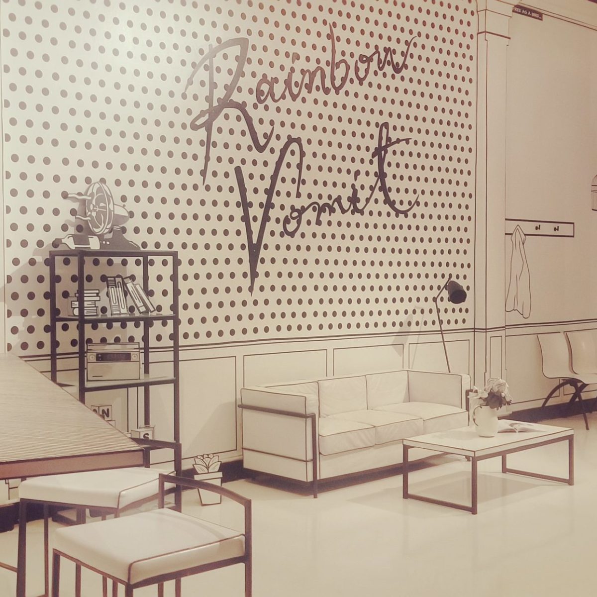 Rainbow Vomit is a 2600 sq ft exhibit with 7 rooms and at least 20 photo opportunities. While the exhibit is not massive, we packed it full of fun visuals and fun details for many unique picture-taking spots!